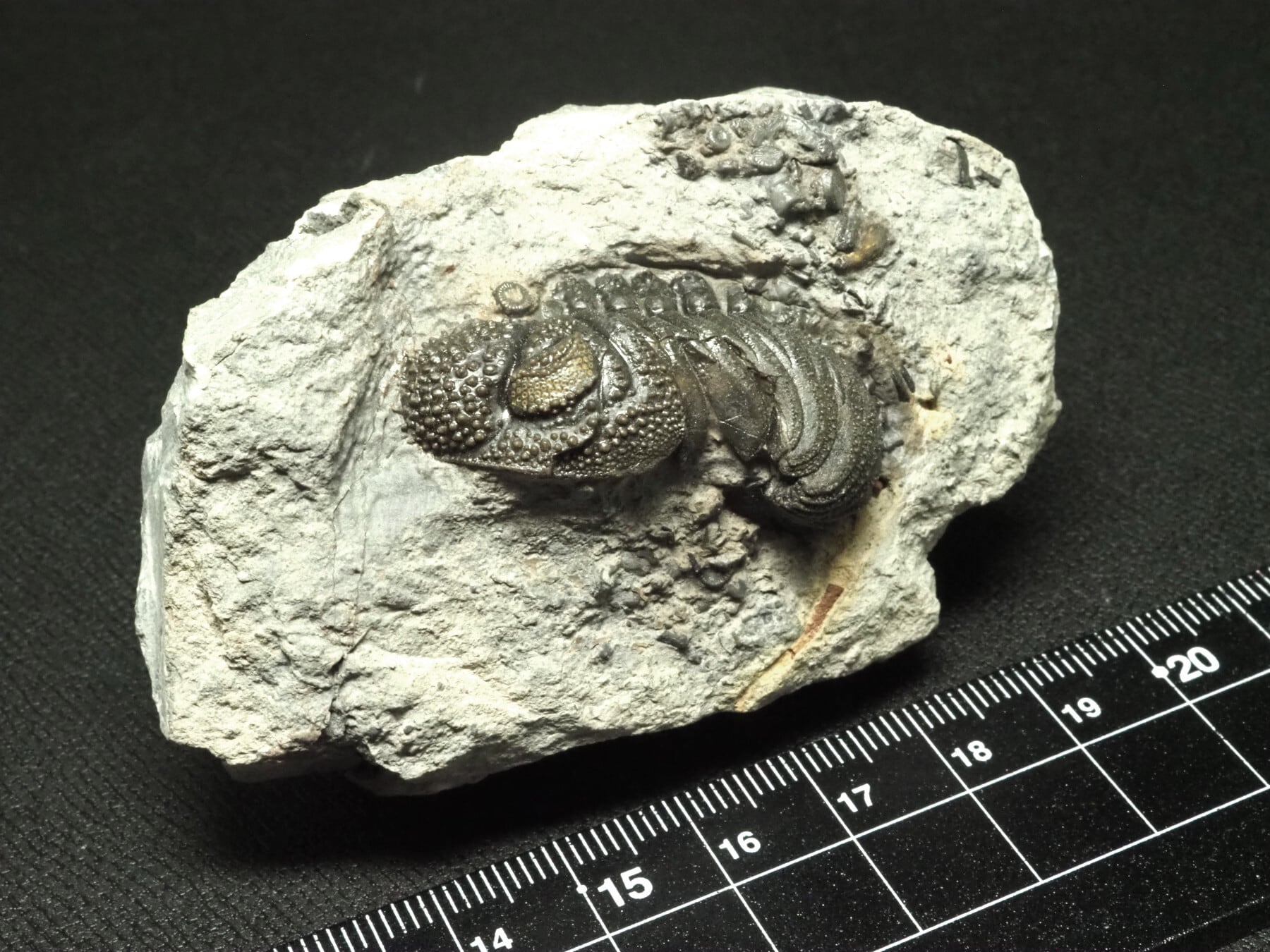 あえてスピニファーを半分残し、母岩に残る微細な生物(ウミユリ片やウニの棘など)を掘り出した、遊び心のある極上標本。